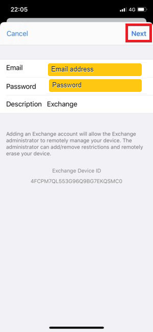 7)Enter your Email address and Password and select Next (Note: the Password is case-sensitive). |