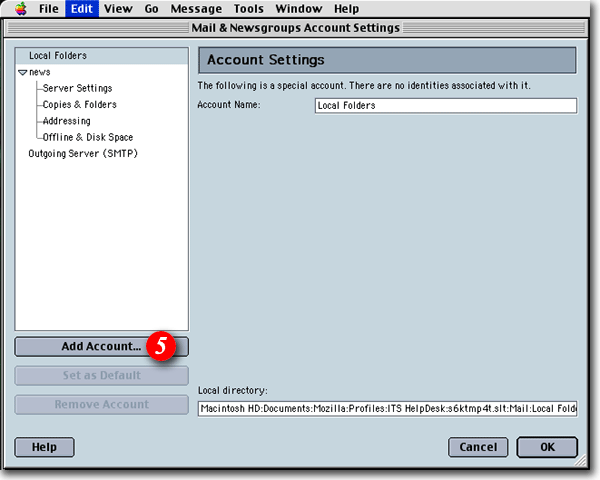 | 4)Select 'Mail & Newsgroups Account Settings...' (This option will only be available if you have opened the Mail and News Group window. If you do not get this option, please go.back to steps 1and 2) |