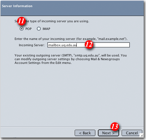 | 12)Enter 'mail.iqcia.org' as the Incoming Server name |
